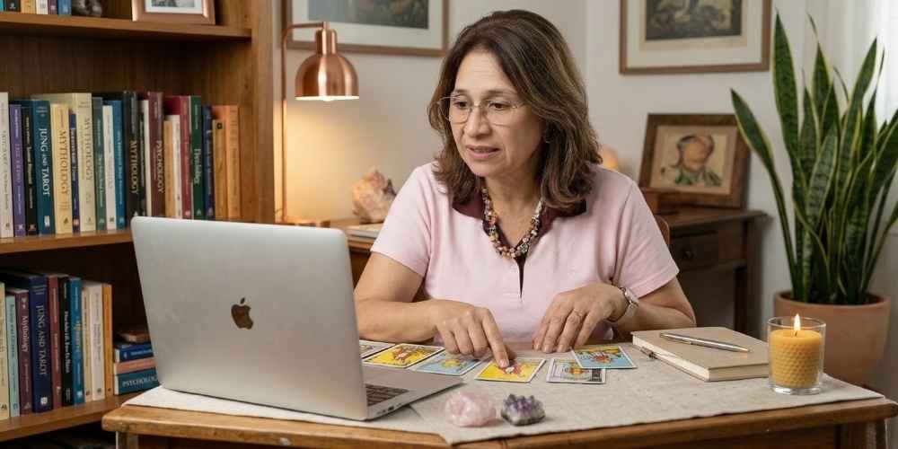 A Leitura Terapêutica do Tarô Alquímico on-line permite acessar, à distância, as informações que o seu inconsciente revela por meio da simbologia das cartas. Cada arcano é interpretado dentro das áreas da vida, trazendo clareza sobre emoções, padrões e movimentos internos que influenciam suas escolhas no presente.